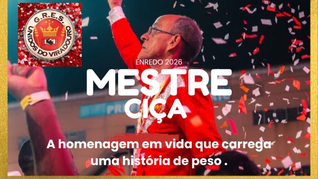 🎶 A tricampeã do Carnaval carioca (1997, 2020 e 2024), GRES Unidos da Viradouro, prepara um desfile inesquecível para 2026. O grande homenageado, pela marcante voz do interprete Wander Pires, será ninguém menos que o seu mestre de bateria, Moacyr da Silva Pinto, carinhosamente conhecido como Mestre Ciça.