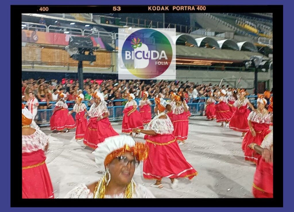 • A Estética da Realeza: A saia rodada não é apenas um figurino; é a representação da grandiosidade dessas “mães” que giram para manter o mundo do samba em equilíbrio.